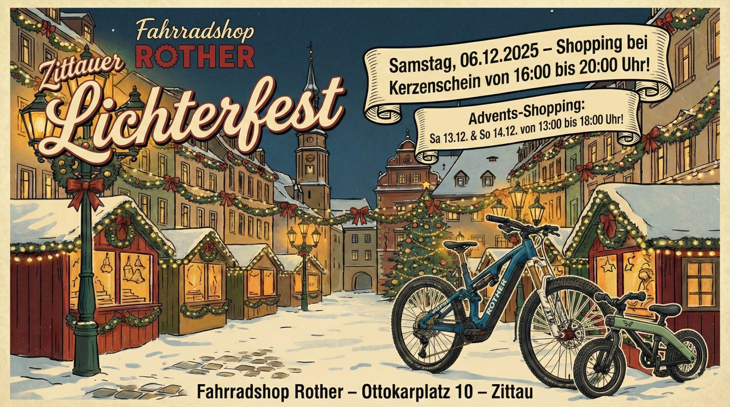 Weihnachten steht vor der Tür und in Zittau findet das alljährliche Lichterfest statt. Auch wir sind mit dabei und haben für euch zu folgenden Zeiten geöffnet. Samstag 06.12.2025 wie gewohnt 9-12 Uhr und zusätzlich 16-20 Uhr zum Shopping bei Kerzenschein. Samstag 13.12.2025 wie gewohnt 9-12 Uhr und zusätzlich 13-18 Uhr Advents-Shopping Sonntag 14.12.2025 von 13-18 […]